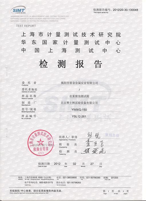 >>鹽霧腐蝕試驗(yàn)箱檢測(cè)報(bào)告-上海計(jì)量院-富金實(shí)業(yè)