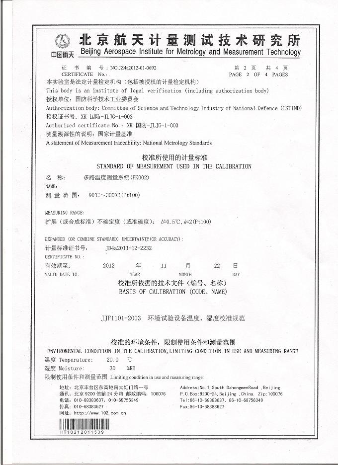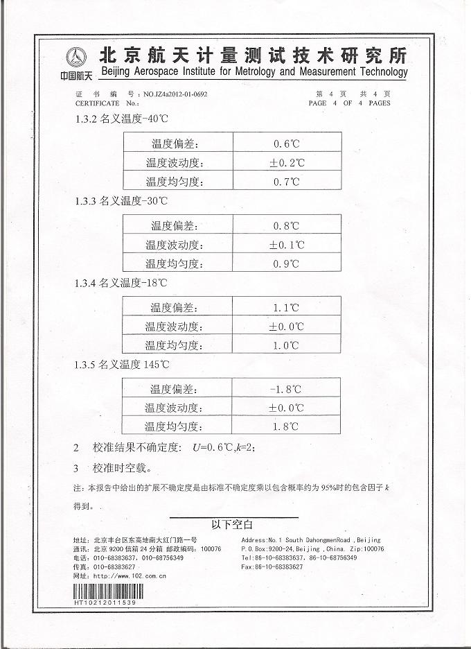 >>高低溫交變試驗(yàn)箱校準(zhǔn)證書-航天計(jì)量-航天一院