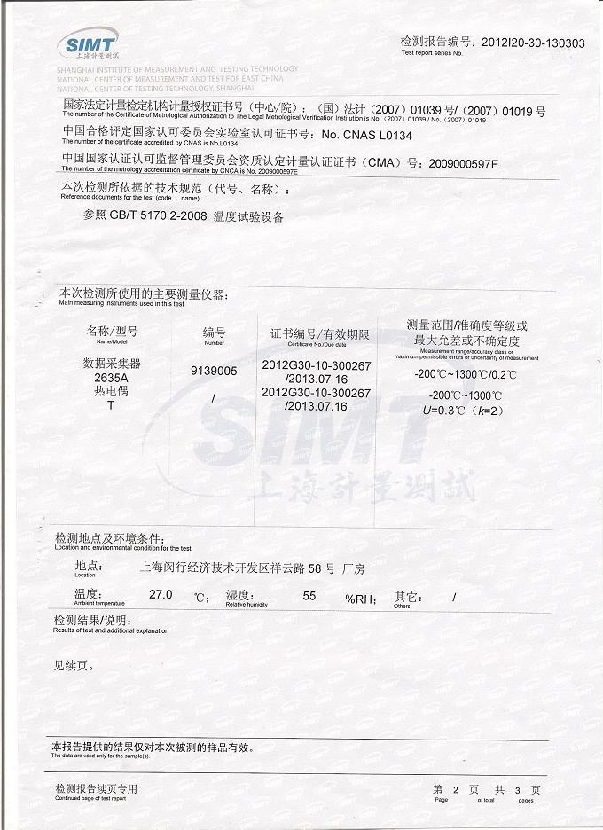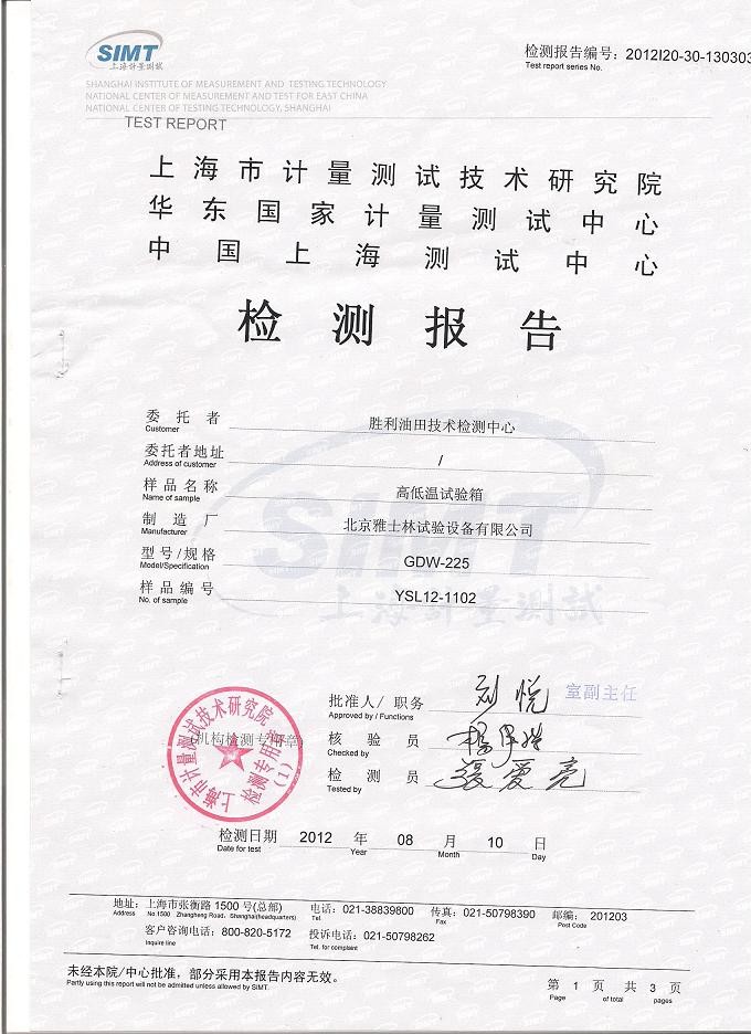 >>高低溫試驗箱產(chǎn)品質(zhì)量檢測報告模板